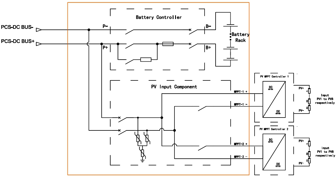 3. الوصول الاختياري إلى جانب PV DC لمطابقة وحدة تحكم MPPT ذات المحور والتحدث ;