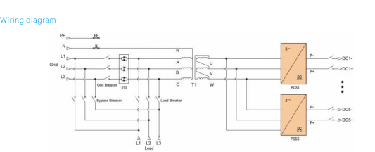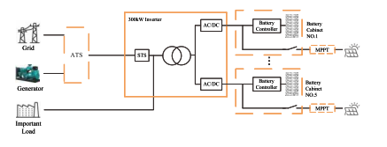 ميزة يستخدم النظام وحدات العاكس المعيارية في التكوين المتوازي، حيث يتوافق مدخل التيار المستمر لكل وحدة عاكس مع خزانة بطارية مخصصة، تمكين إدارة كل مجموعة للقضاء على التيارات المتداولة بين سلاسل البطارية. تدعم وحدات الطاقة AC/DC النشر المرن من حيث الكمية والنوع تصنيف الطاقة، مع قدرة قصوى تبلغ 60 كيلو واط في وحدات متوازية مكونة من 5 وحدات إعدادات. يتم تسليم خرج التيار المتردد من وحدات الطاقة من خلال محول مرحلة الإخراج المعزولة، لتزويد الحمل بالطاقة بمقاومة قوية الصدمة الحالية يستخدم نظام ESS الهجين التكامل الكهروضوئي المقترن بالتيار المستمر، مما يحقق مستويات عالية كفاءة تحويل الطاقة وتحسينها للسيناريوهات خارج الشبكة باستخدام الطاقة الكهروضوئية قدرة التوليد تتجاوز الطلب على الحمل؛ وحدات تحكم MPPT ذات التصنيف الخارجي دمج وظائف الموحد وMPPT في حاوية واحدة مقواة. يتضمن النظام الكامل خيار مولد الديزل ATS، وهو محرك هجين بقدرة 300 كيلووات العاكس وجهاز التحكم PV MPPT ونظام تخزين طاقة البطارية.